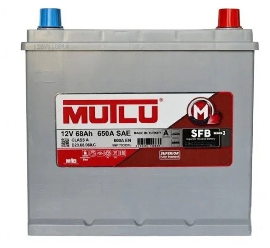 Аккумулятор автомобильный Mutlu Asia 68 А/ч 600 А обр. пол. 70D23FL Азия авто (232x173x225) D23.68.060.C с бортиком