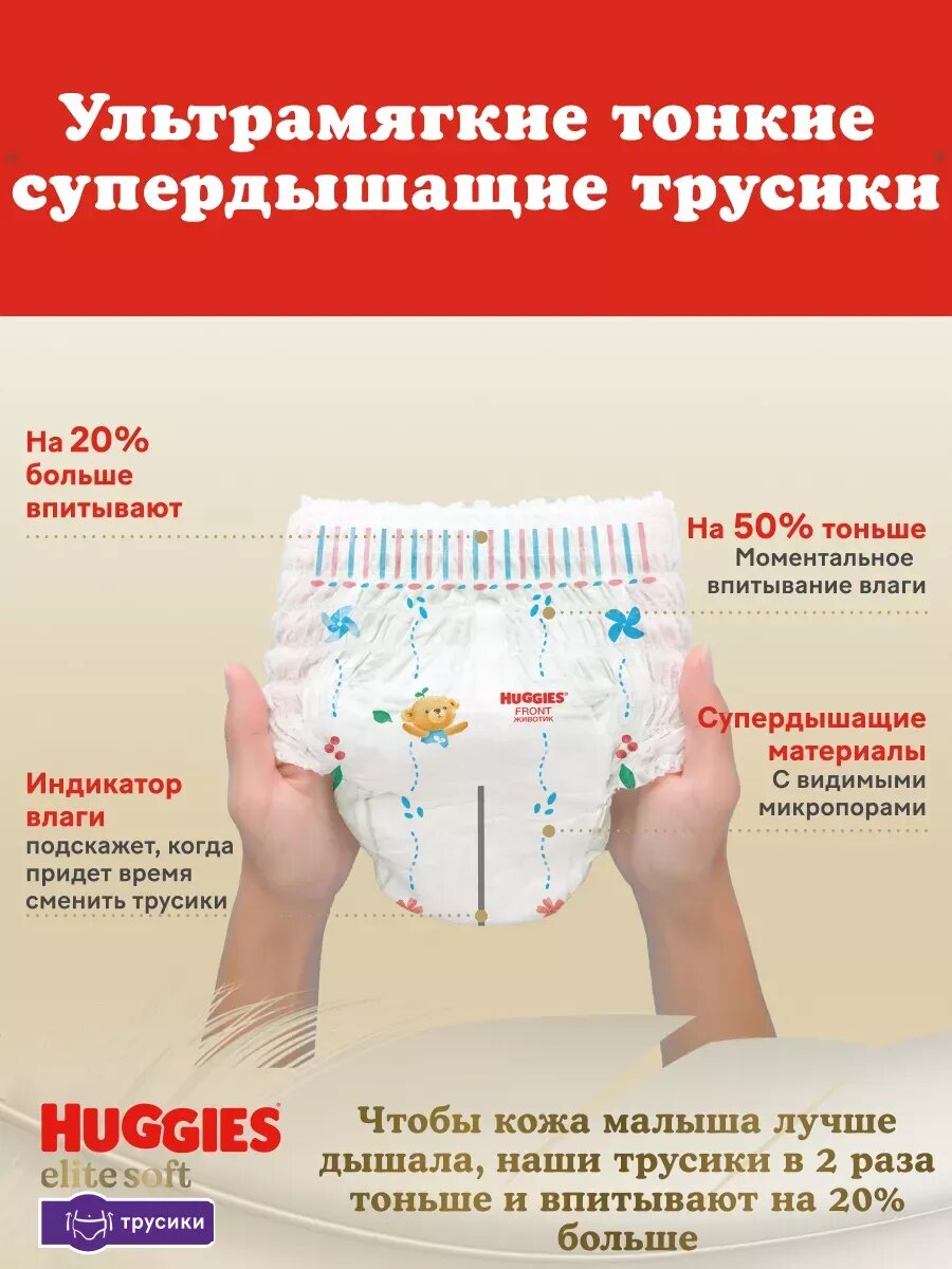Трусики-подгузники Huggies, Elite Soft, размер 5, 12-17 кг., 34 штуки