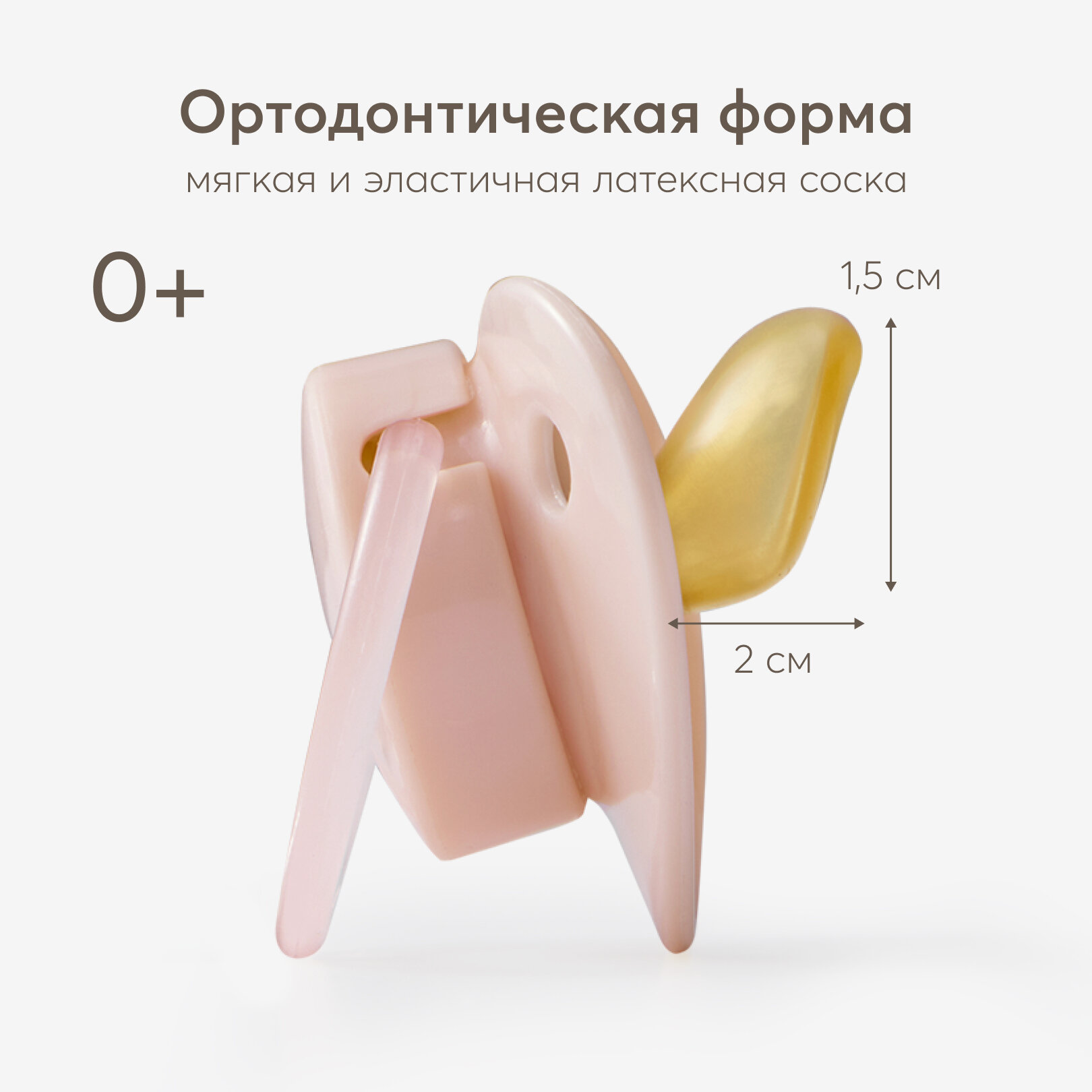 Соска (пустышка) 13022, Соска пустышка для новорожденных 0 Happy Baby пустышка латексная, ортодонтическая форма, с колпачком, розовая