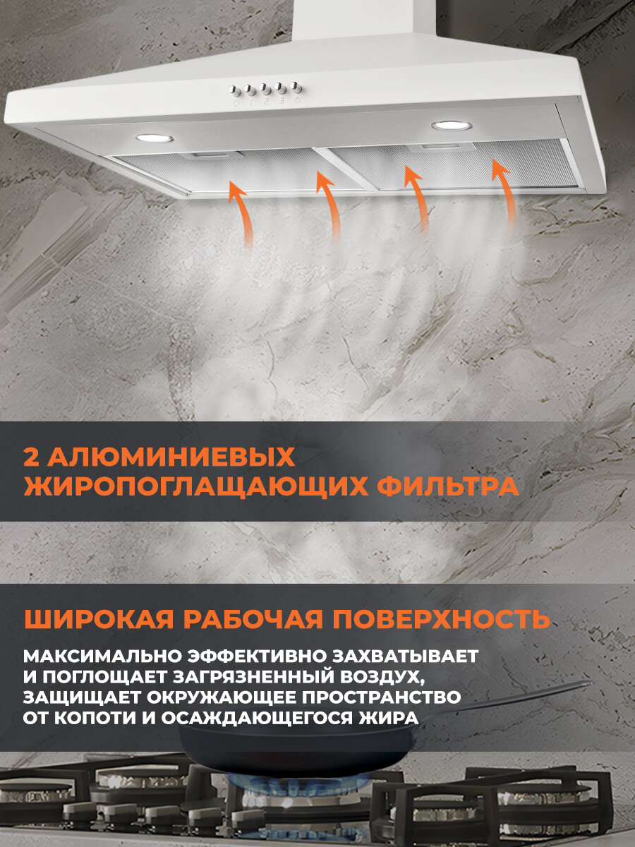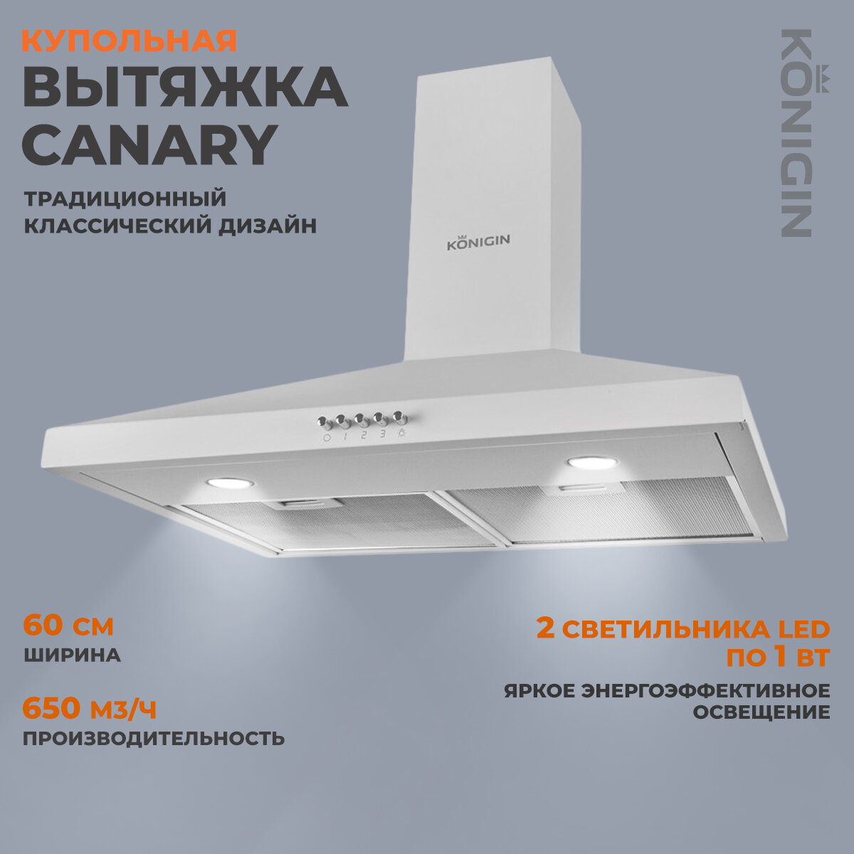 Вытяжки Вытяжка Konigin Canary, купольная, 60 см, 120Вт, 3 скорости, LED, белая