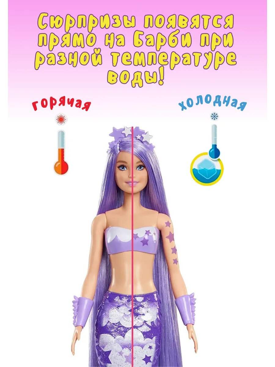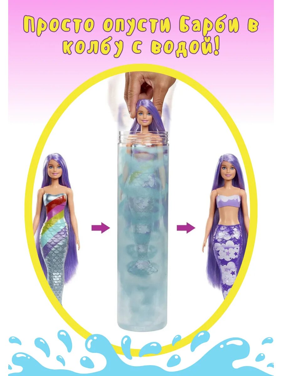 Кукла-сюрприз Barbie Color Reveal Rainbow Mermaid Series, HCC46 розовый