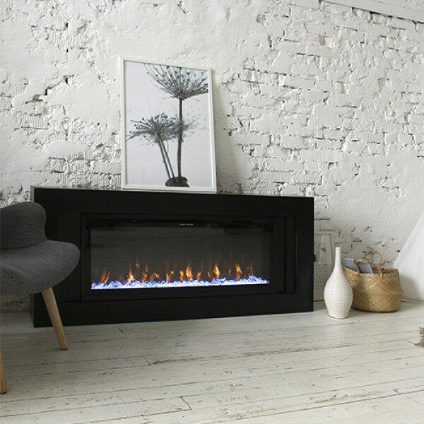 Линейный электрокамин RealFlame Stockholm BLM c очагом Saphir 60, кристаллы, обогрев, пульт ДУ (линейный электрический камин)