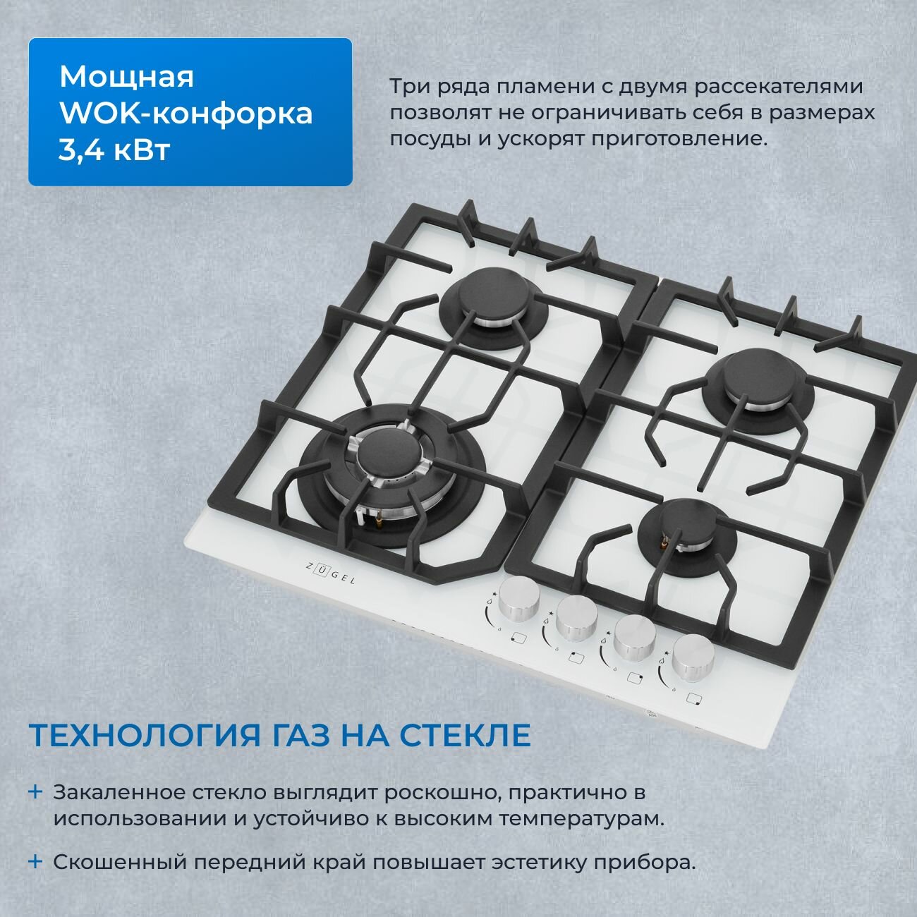 Газовая варочная панель ZUGEL ZGH601W, белый