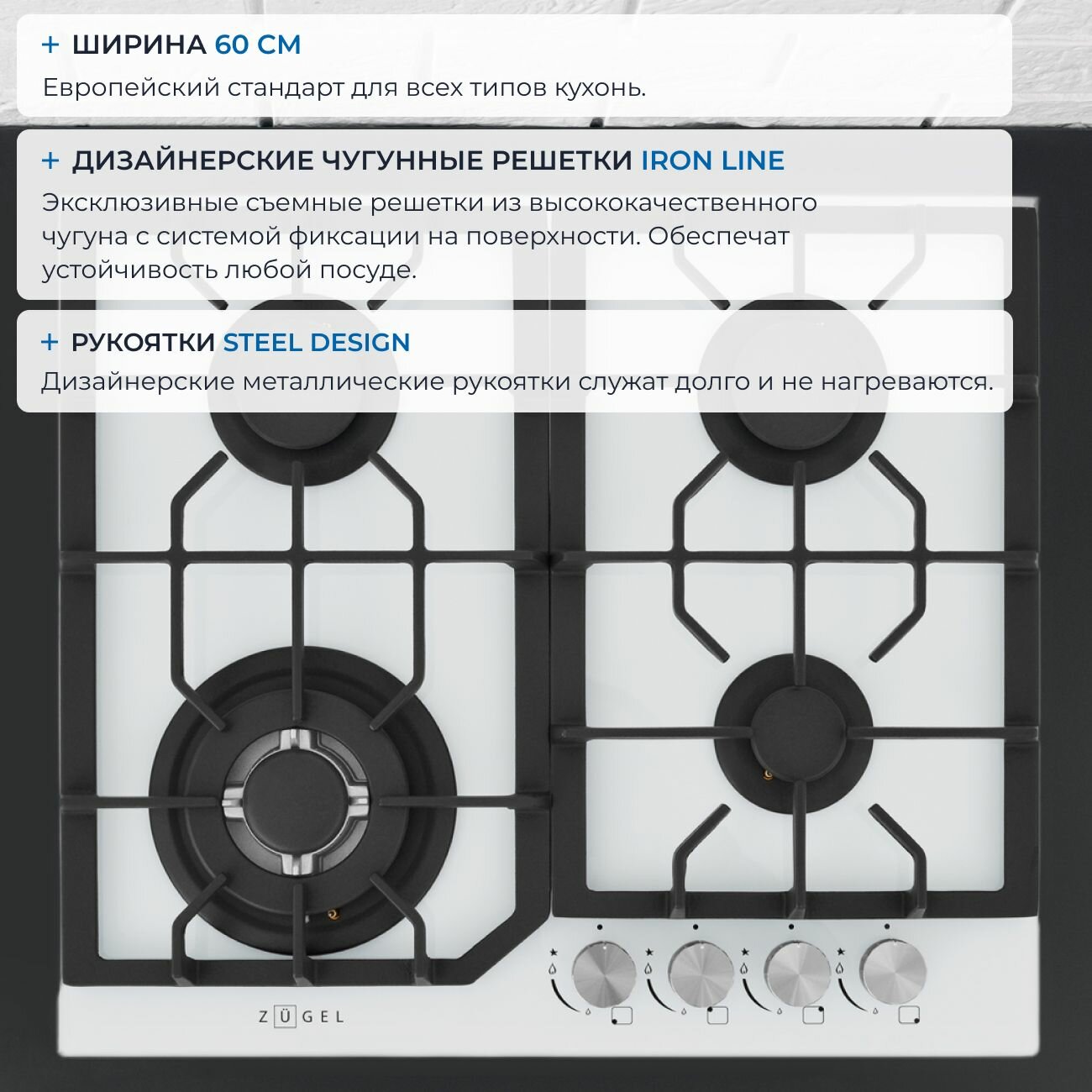 Варочная поверхность Варочная панель газовая ZUGEL ZGH601W, белый