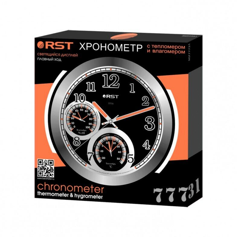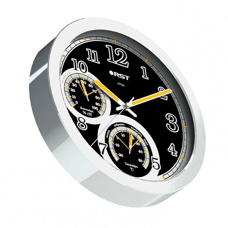 Метеостанции Светящиеся настенные метеочасы, RST77731, плавный ход, d-25 см, сталь