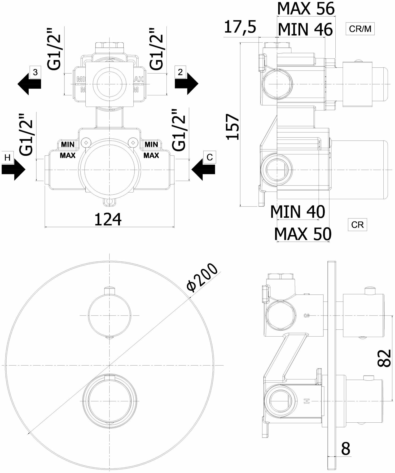 Термостат Paffoni Light LIQ018CR с внутренней частью, для душа