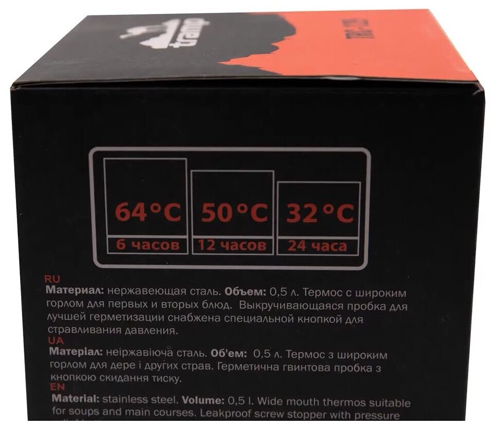 Термосы Термос Tramp с широким горлом 0.5 л, TRC-129, нержавеющая сталь/пластик, серый