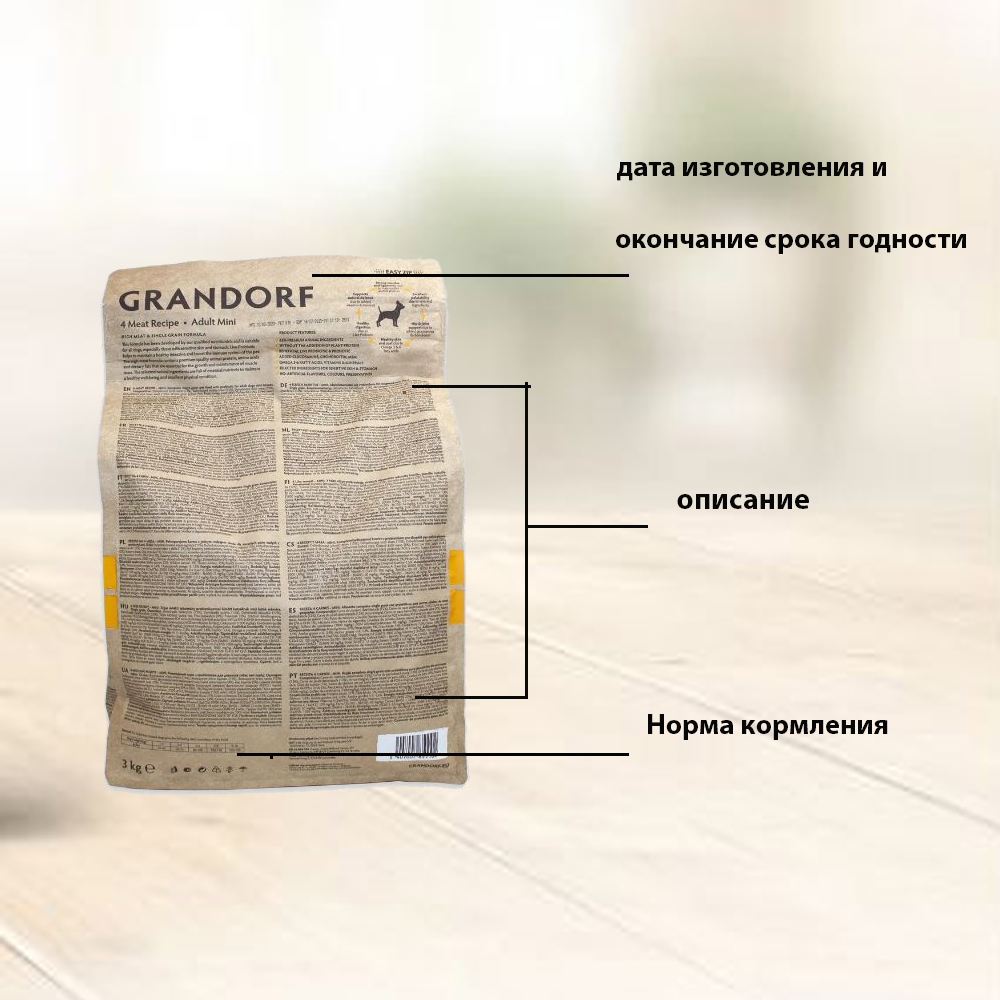 GRANDORF SINGLE GRAIN DOG ADULT MINI 4 MEAT RECIPE низкозерновой для взрослых собак маленьких пород 4 вида мяса с ягненком, индейкой, уткой и кабаном (3 кг)