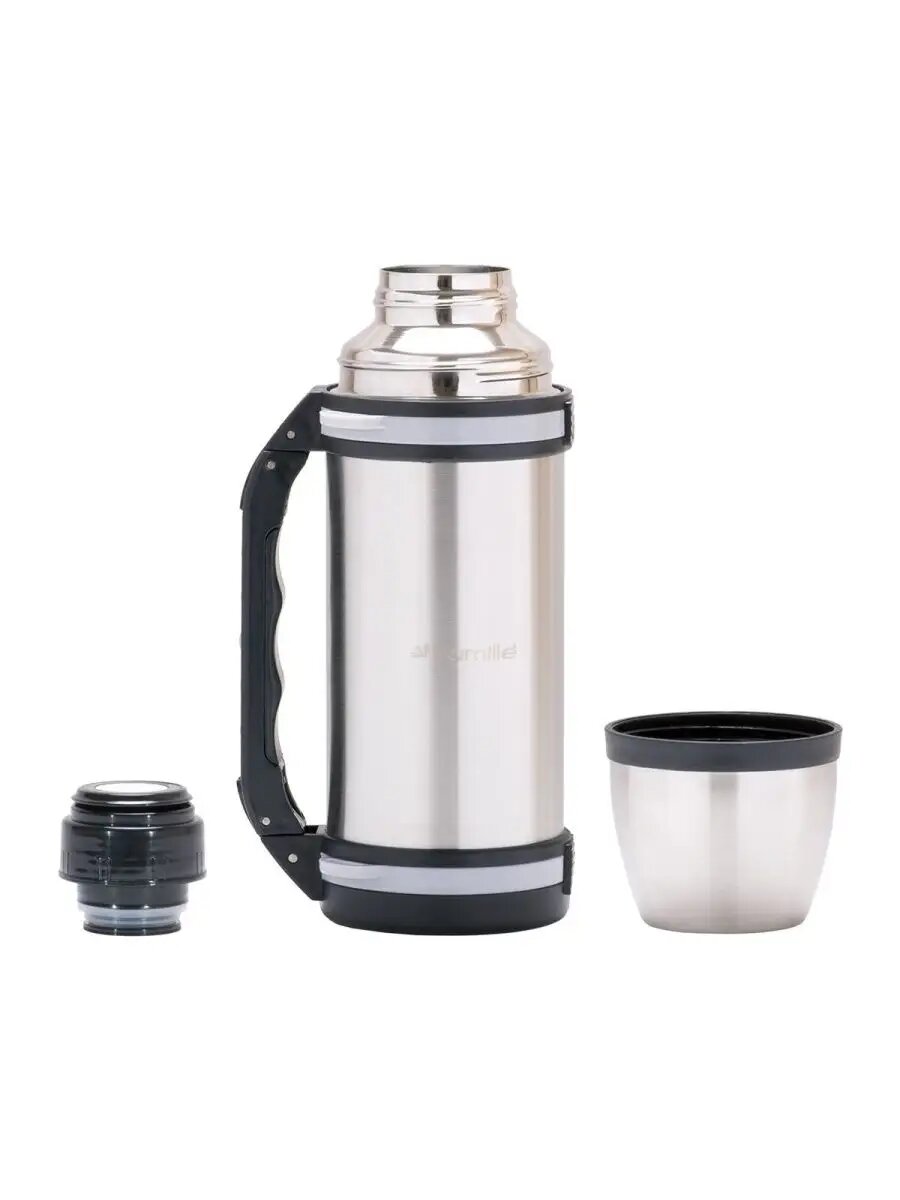 Термос Kamille туристический, 1 л из нержавеющей стали с ручкой, ремешком и чашкой-крышкой