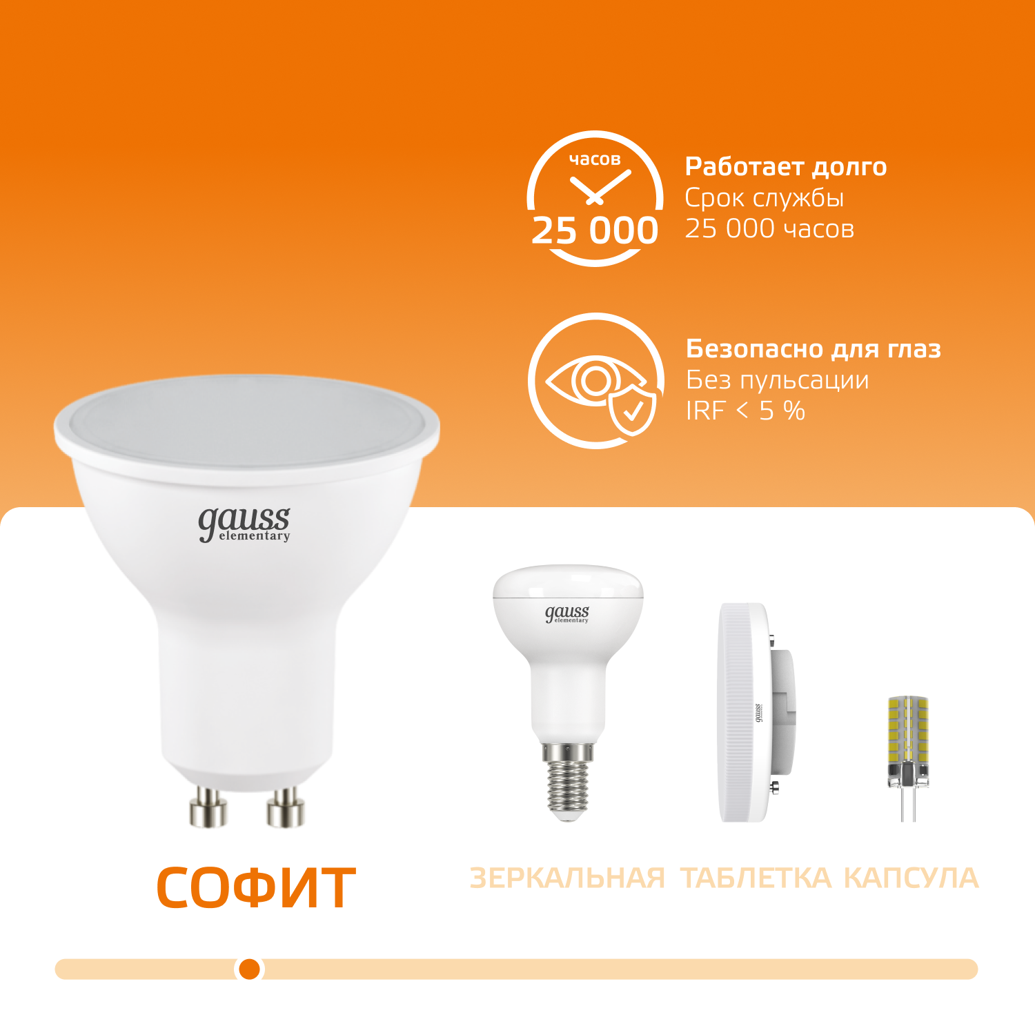 Лампа светодиодная LED софит 9W GU10 640Лм 3000К 220V Elementary (Gauss), арт. 13619 353 ₽ Подробнее