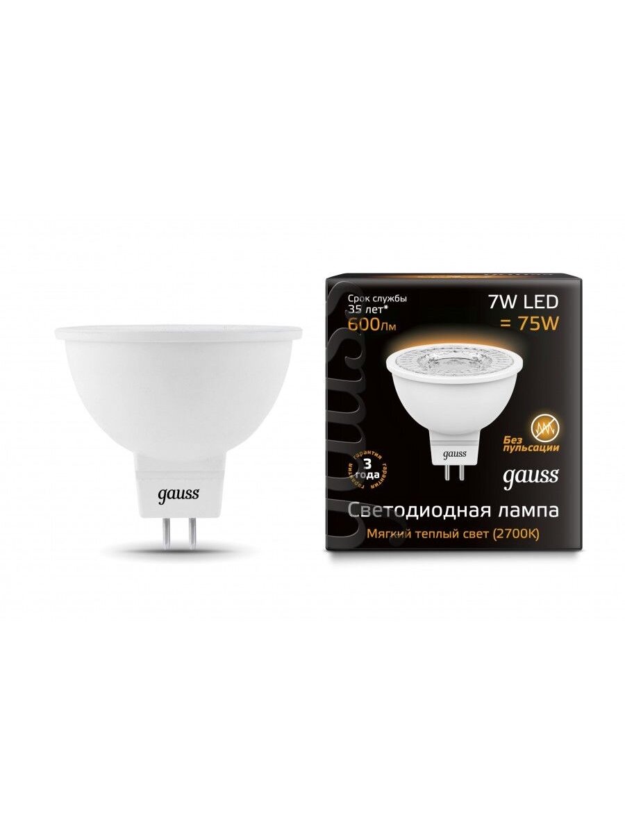 Лампа Gauss MR16 7W 600lm 3000K GU5.3 LED 101505107 (10 шт)