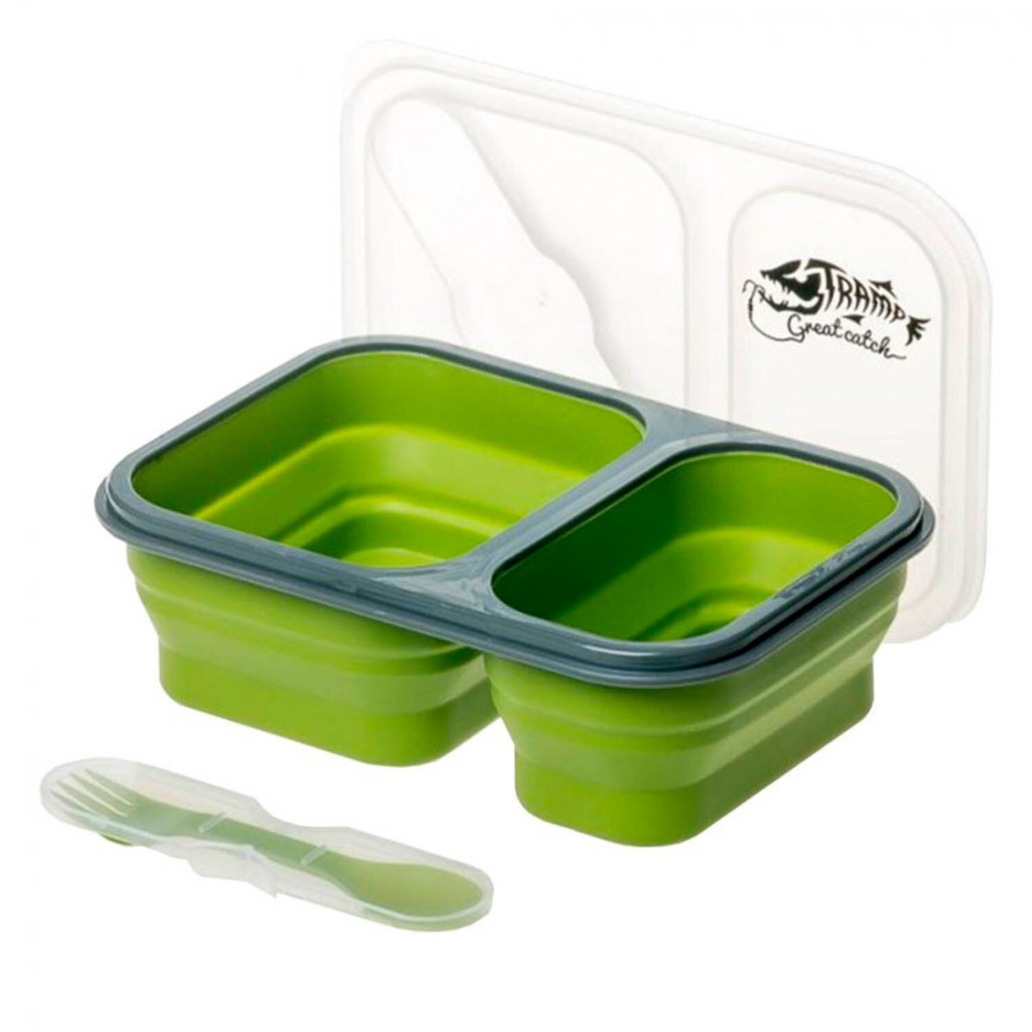 Tramp Контейнер силиконовый 2 отсека с ловилкой, TRC-090, оливковый