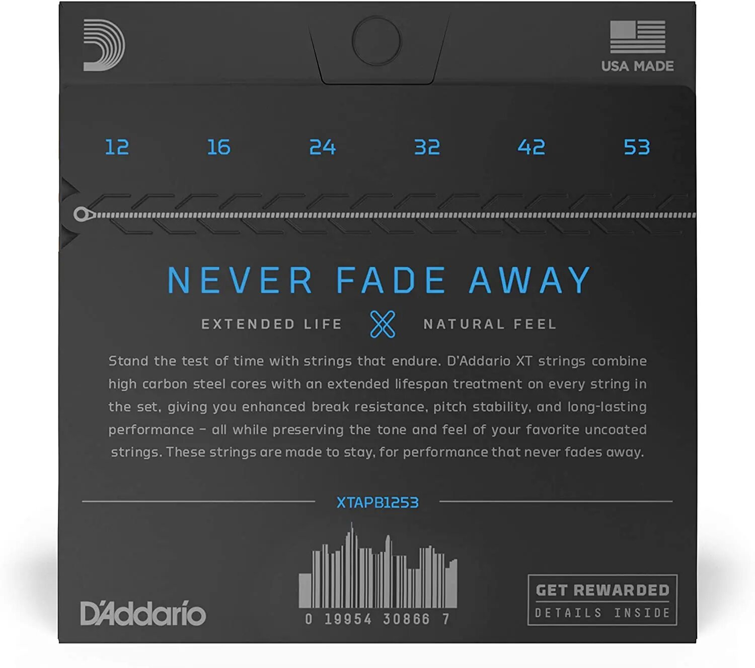 XTABR1253 XT Комплект струн для акустической гитары, бронза 80/20, 12-53, с покрытием, D'Addario