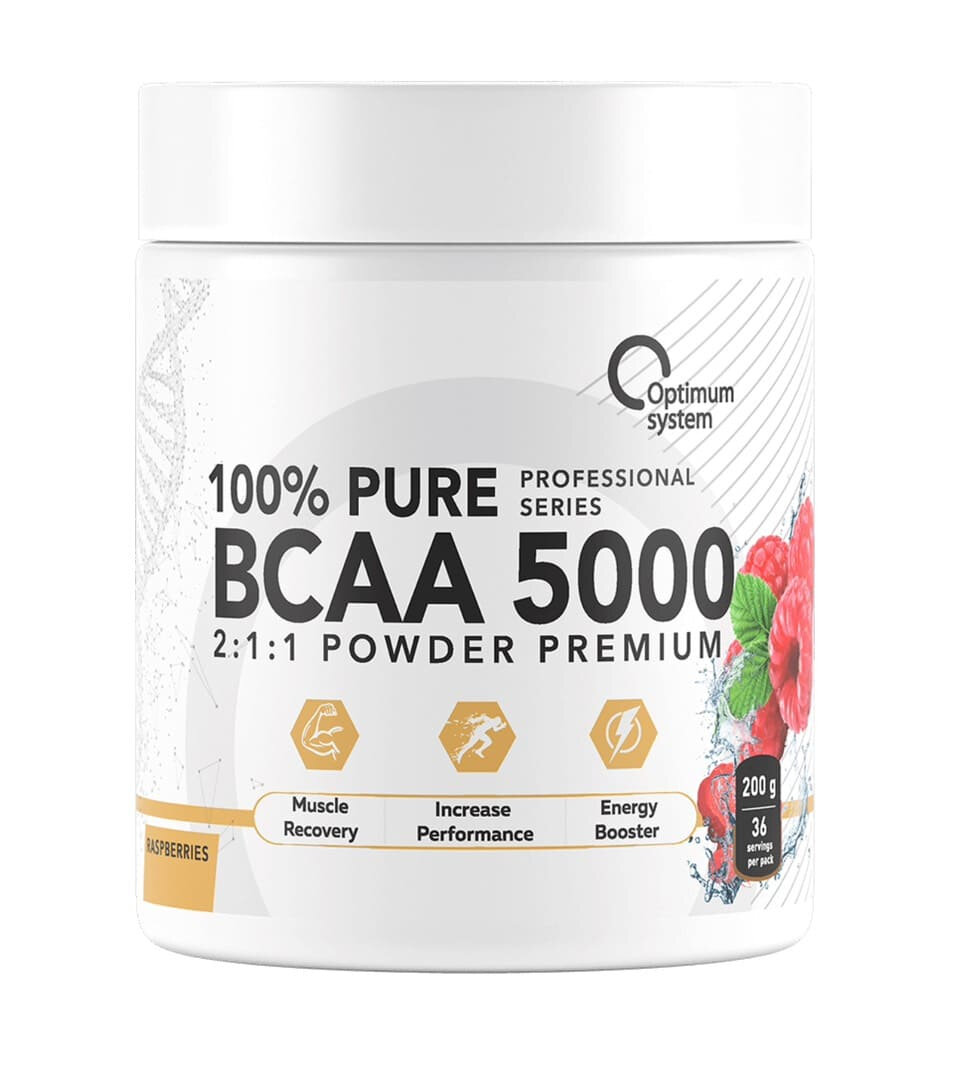 Аминокислоты Optimum System 100% pure BCAA 5000 Powder 200 гр - вкус малина