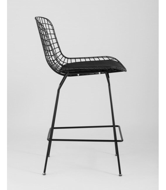 Стул полубарный Stool Group Стул полубарный с низкой спинкой Bertoia черный с черной подушкой арт. УТ000004222