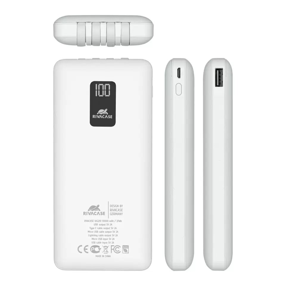 Powerbank Внешний аккумулятор RIVACASE VA2210 (10000 мАч) с дисплеем и встроенными кабелями белый
