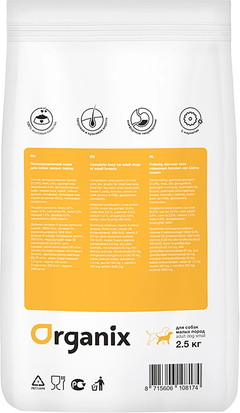 ORGANIX-Сухой корм для собак курица 1 уп. х 1 шт. х 2.5 кг (для мелких и карликовых пород)