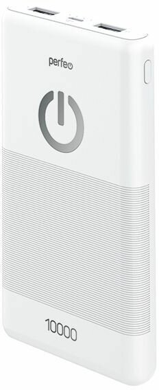 Аккумулятор внешний универсальный Perfeo PF_B4297 10000mAh Белый (Micro usb /USB 1 А, 2.1A)