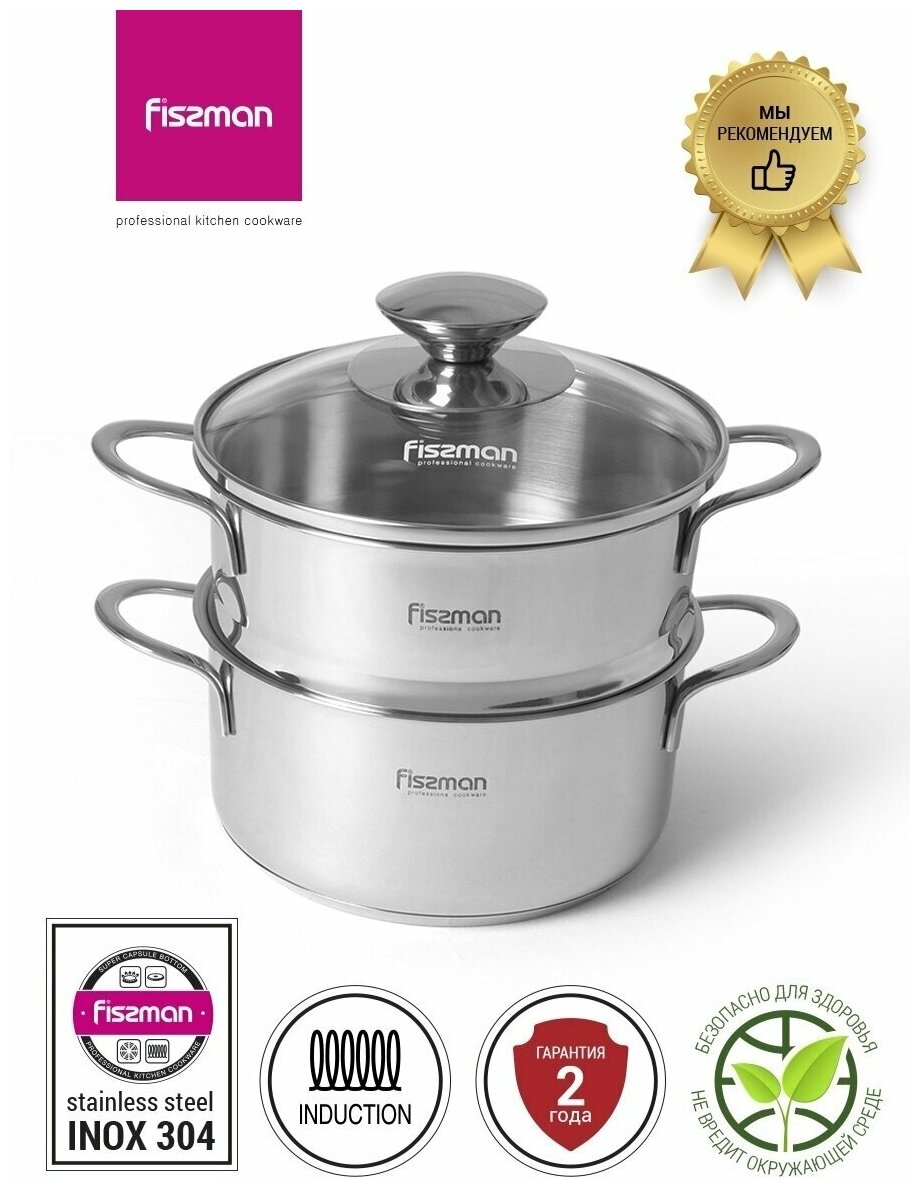Кастрюли Кастрюля Fissman BAMBINO 14x7 см / 1,1 л со вставкой-пароваркой (нерж. сталь) (5275)