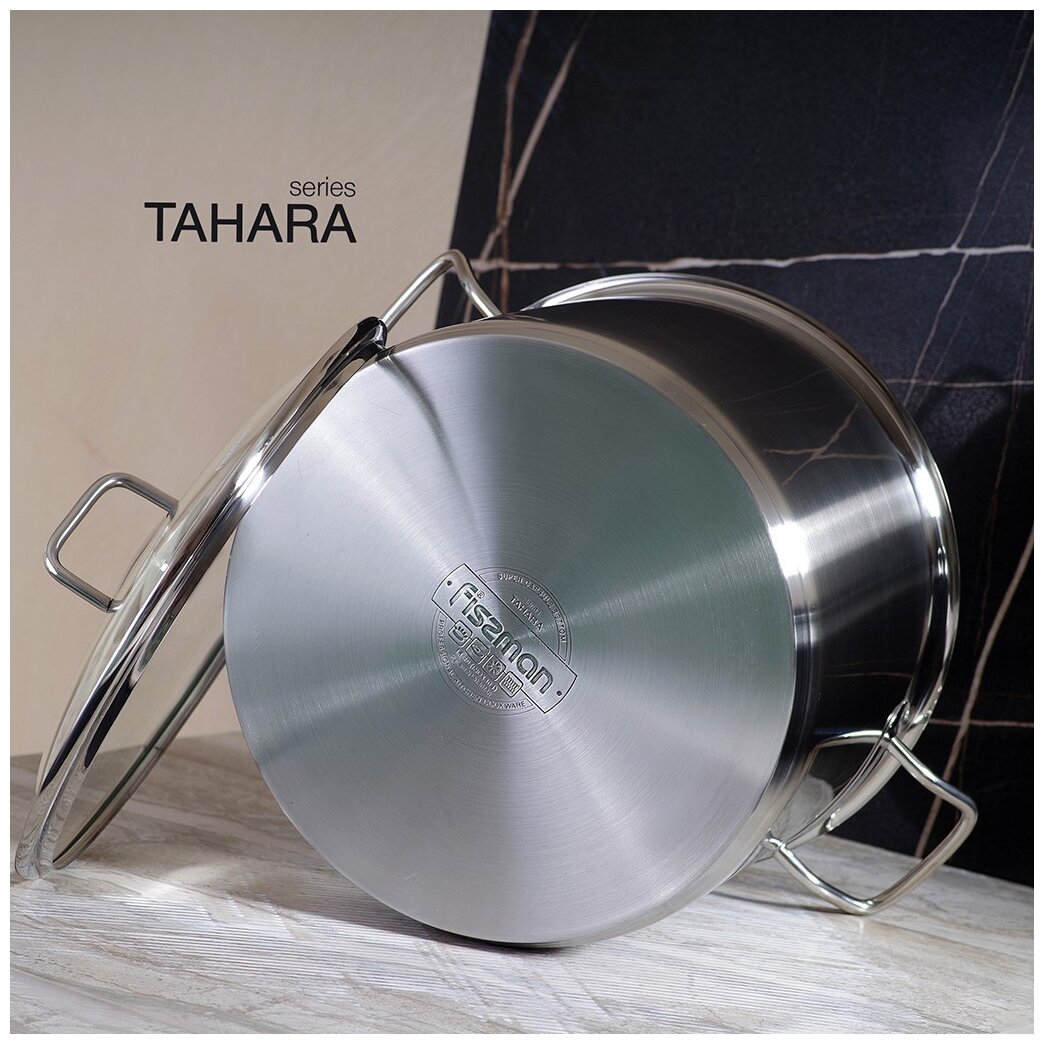 5308 FISSMAN Кастрюля TAHARA 13,2л / 28x21,5см с крышкой (нерж.сталь) Ручки-нерж.сталь; Крышка-стекло; Индукция; Термоаккумулирующее многослойное дно.
