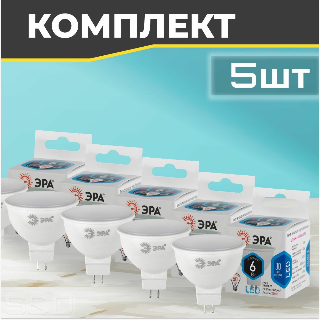 Лампочки Лампочка светодиодная gu5.3 6W 4000K нейтральный белый свет 5 штук ЭРА