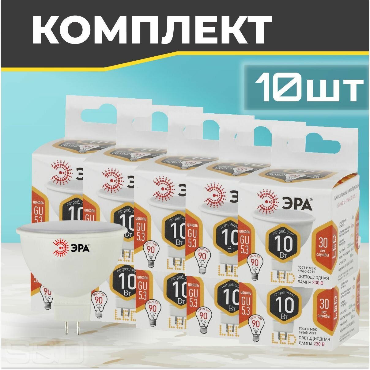 Лампочки Лампочка светодиодная gu5.3 10W 2700K теплый белый свет 10 штук ЭРА