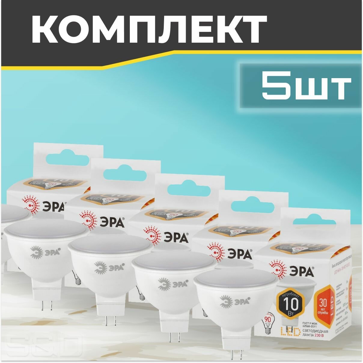 Лампочки Лампочка светодиодная gu5.3 10W 2700K теплый белый свет 5 штук ЭРА