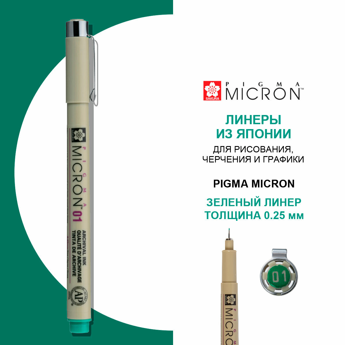 Ручка капиллярная Sakura Pigma Micron 01, перо 0.25 мм, цвет зеленый