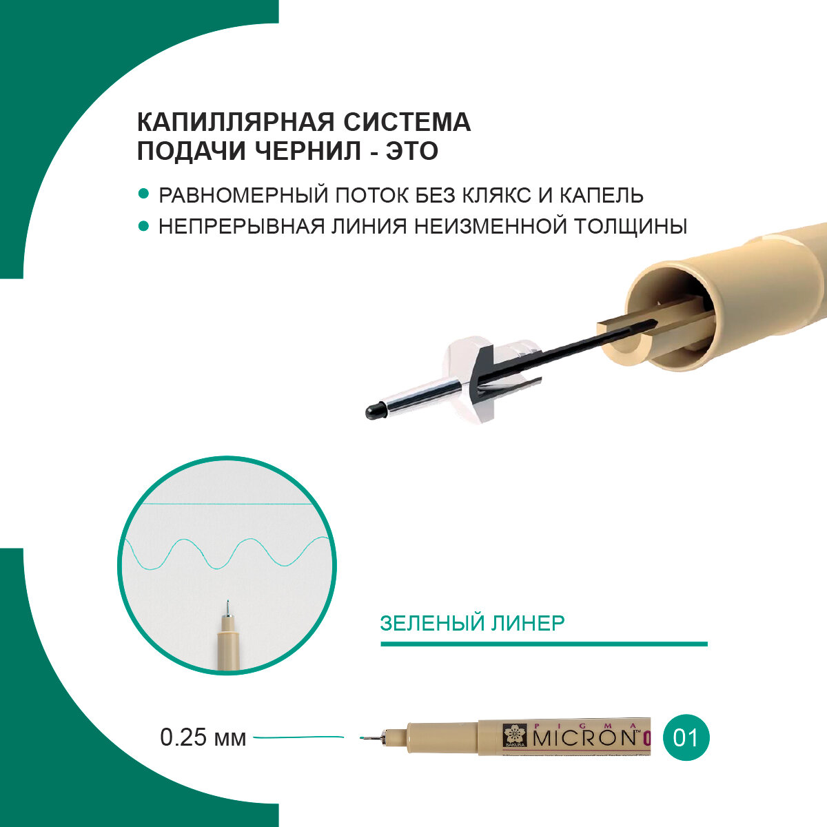 Ручка-линер капиллярная Pigma Micron, 0,25 мм., цвет чернил: зеленый