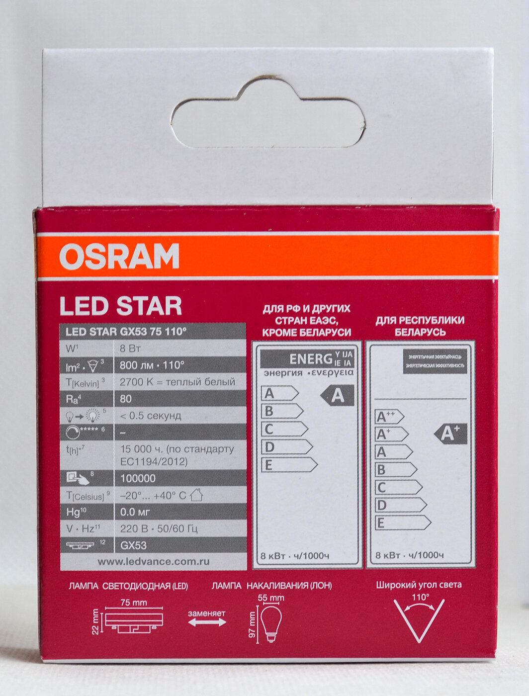 Лампочка светодиодная OSRAM LED Star GX, 800лм, 8Вт, 2700К (теплый белый свет), цоколь GX53, колба GX, таблетка 719 ₽ Подробнее
