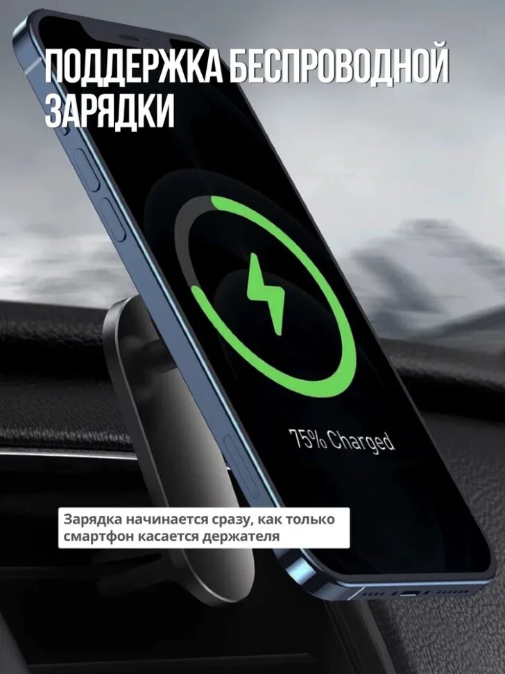 Держатель для телефона в автомобиль магнитный с беспроводной зарядкой 15W на решетку воздуховода и панель Baseus Big Energy Черный MagSafe для Айфон