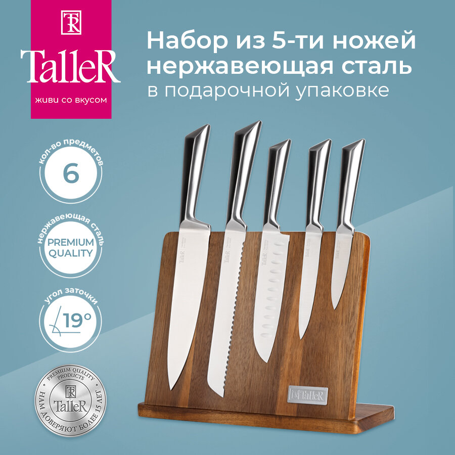 Набор ножей Набор ножей TalleR TR-22088 5 шт из нержавеющей стали на магнитной подставке