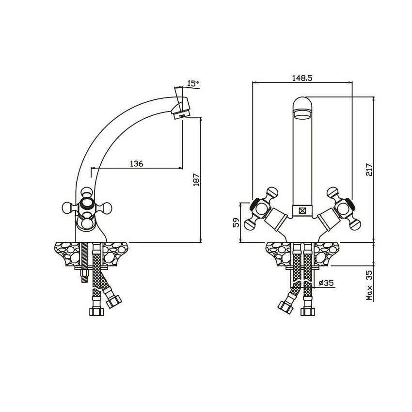 | Подвод воды | шланги / 350 мм / G 3/8" |