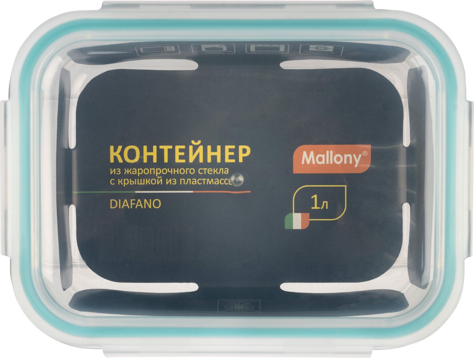 Mallony Контейнер DIAFANO1000 мл из жаропр стекла с крышкой из пластмпрямоугтемп -20 до+200С 005472 .