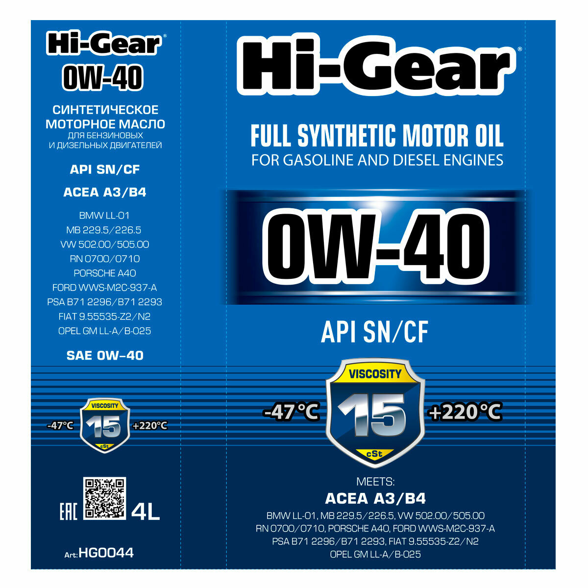Масло моторное Hi-Gear 0W40 SN/CF 4л 2 970 ₽ Подробнее