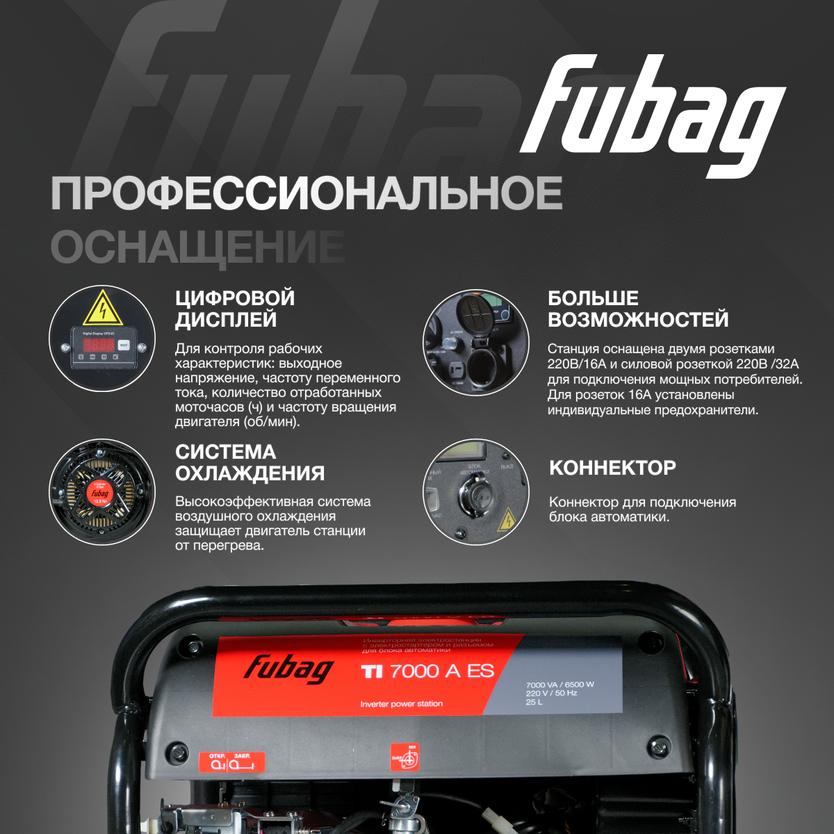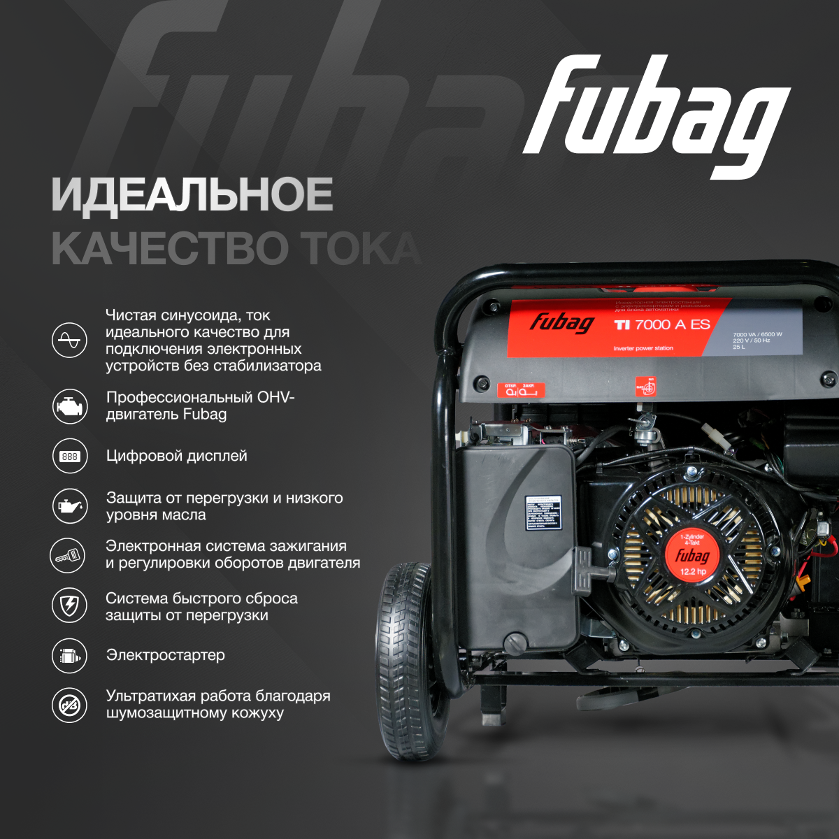 Генераторы Генератор бензиновый инверторный FUBAG TI 7000 A ES, 7 кВт, однофазный, 220 В
