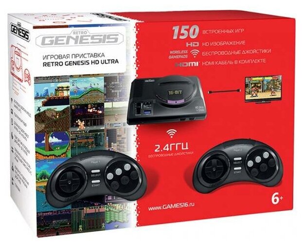 Лучшие цены. SEGA Retro Genesis HD Ultra + 150 игр (2 беспроводных 2.4ГГц джойстика, HDMI кабель) [ConSkDn70. Магазины в вашем городе.