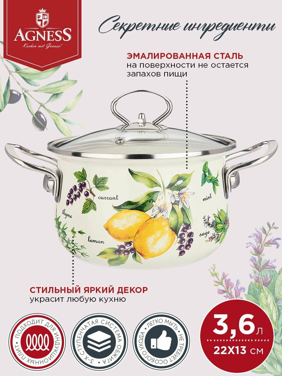 Кастрюли Кастрюля 3,6 л. Agness "Секретные Ингредиенты" для всех видов плит, с крышкой