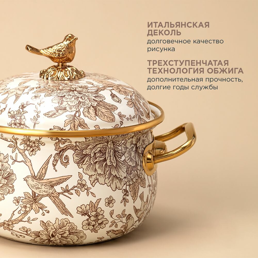 Кастрюля эмалированная с крышкой Vintage Flowers Объем: 3800 мл