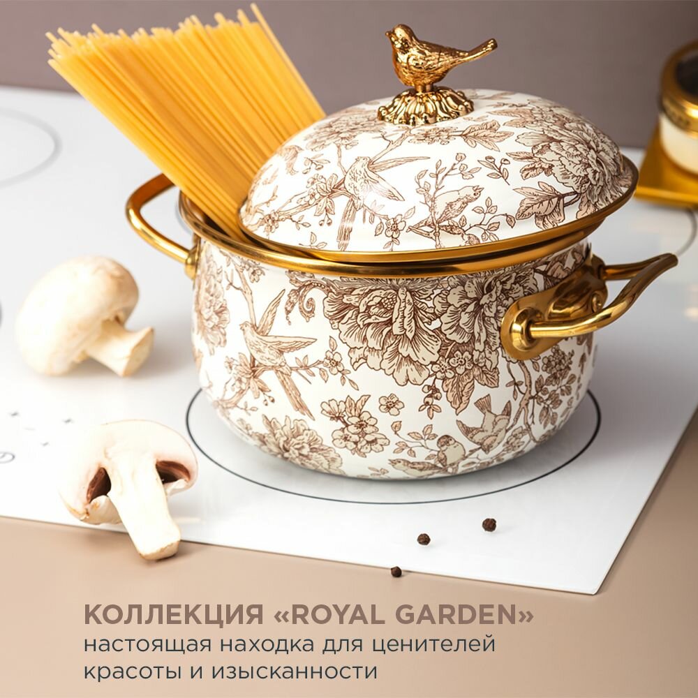 Кастрюля эмалированная с крышкой Vintage Flowers Объем: 6100 мл