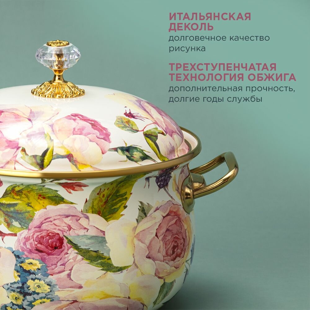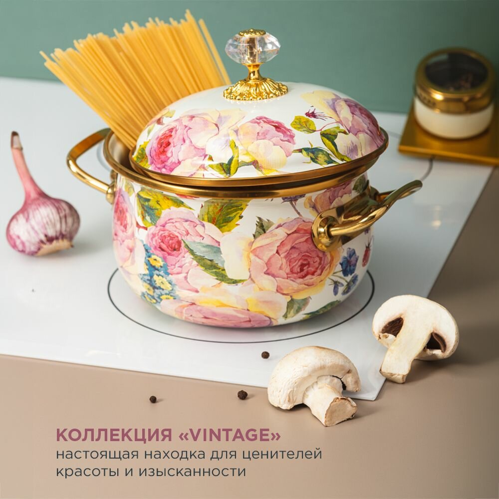 Кастрюля эмалированная с крышкой Vintage Flowers Объем: 3800 мл