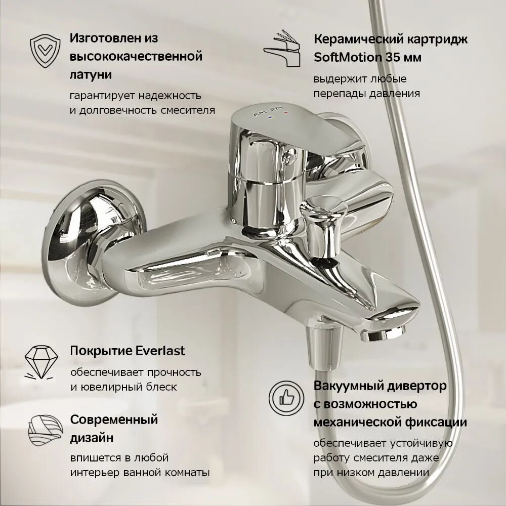 Смесители Смеситель для ванны AM.PM Jump, покрытие High Gloss, аэратор EcoSave, высококачественная латунь, Гарантия 5 лет