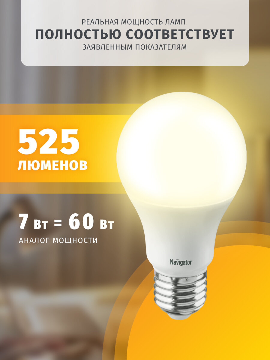Лампочки Лампа светодиодная Navigator 94 385, груша, 7 Вт, Е27, теплый свет 2700К, упаковка 10 шт.