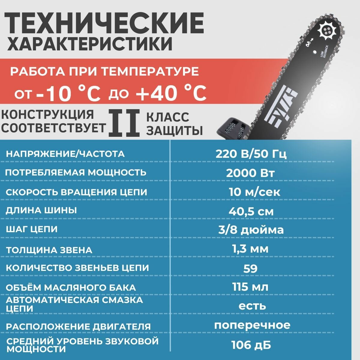 Пилы ПЦ 2016 Электрическая цепная пила 2000Вт, шина40,5, 4500об/мин булат