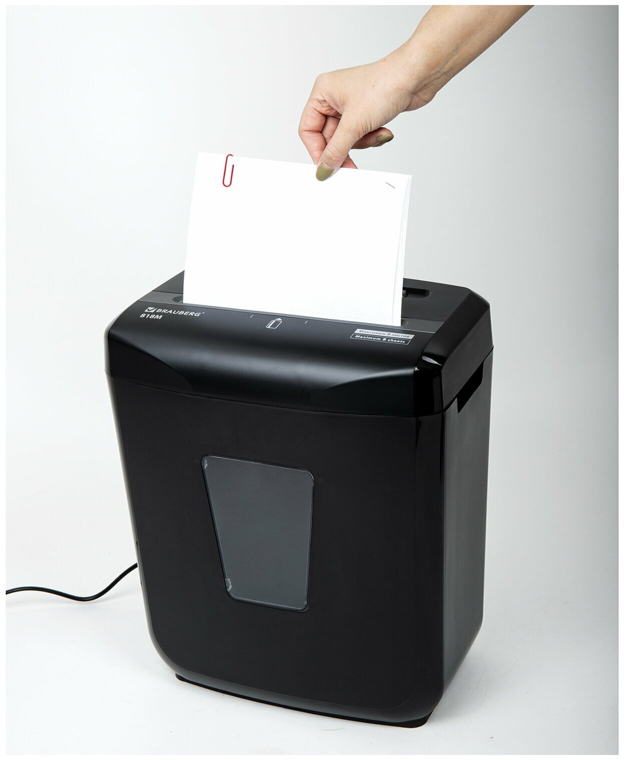 Уничтожители бумаги (шредеры) Уничтожитель (шредер) BRAUBERG 818M, 5 уровень секретности, фрагменты 3х10 мм, 8 листов, корзина 18 литров, 532153