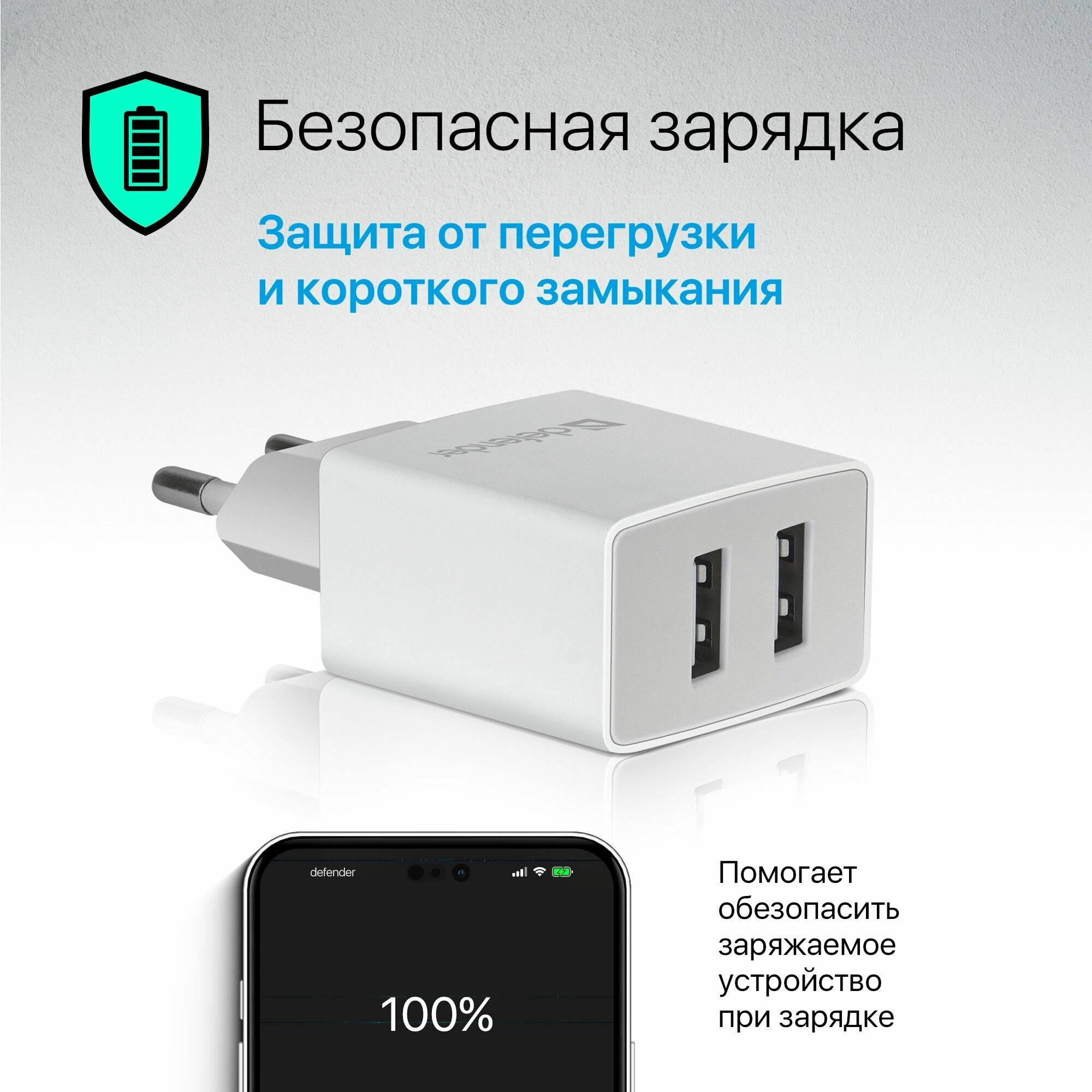 Зарядное устройство сетевое Defender UPA-22 белый, 2xUSB, 2.1А