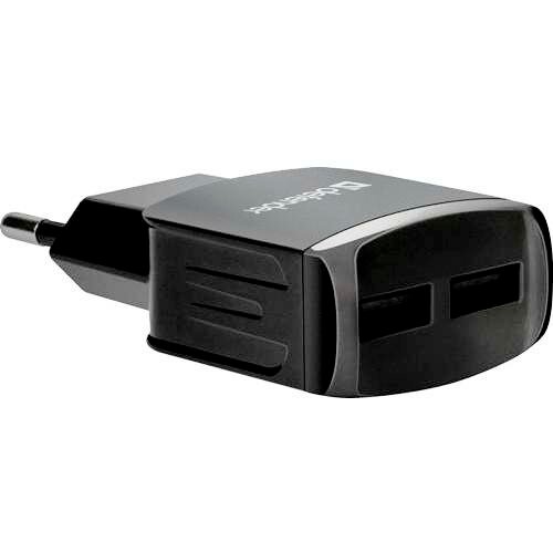 Defender EPA-13 Black (83840) Зарядное устройство USB (Вх. Ac100-240v, Вых. Dc5v, 2xUSB 2.1A)