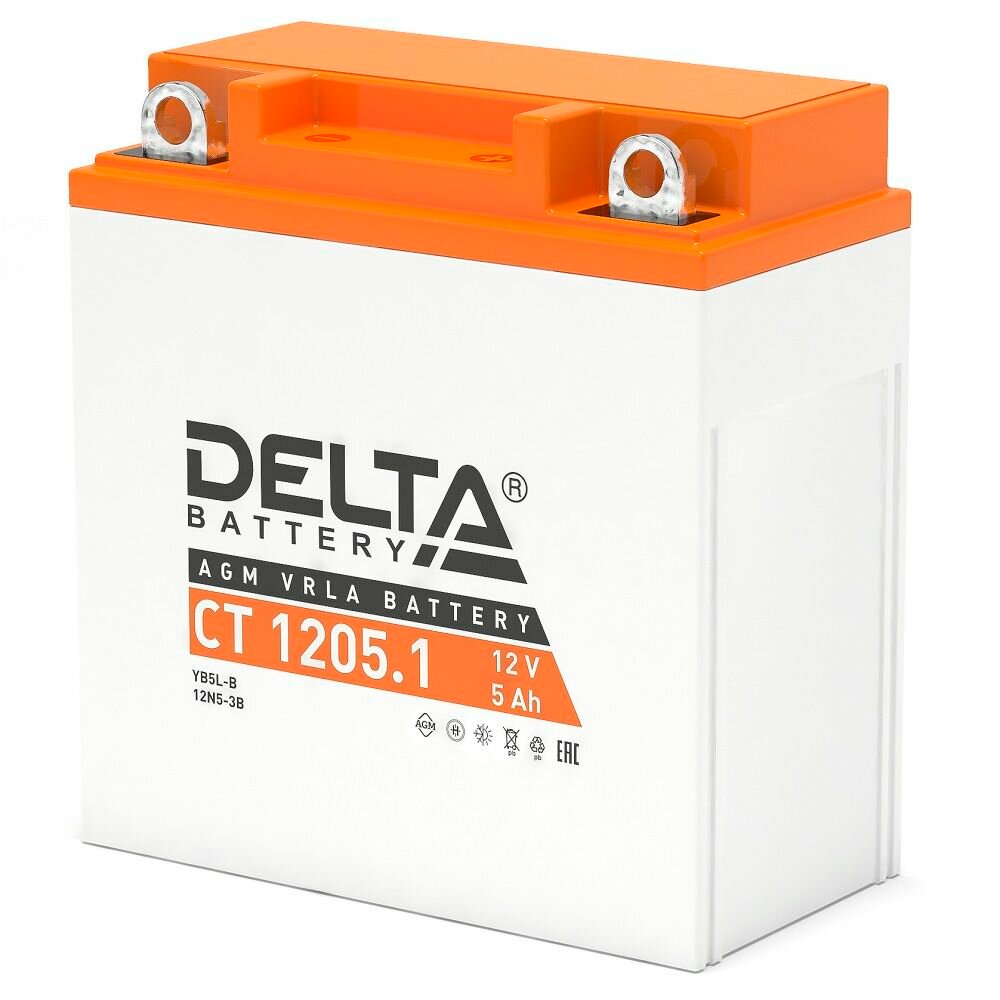 Автоаккумуляторы Мото аккумулятор стартерный Delta CT 1205.1 12В 5Ач обратная полярность 65А (12V 5Ah) (12N5-3B; YB5L-B) AGM, аккумулятор для мотоцикла, мопеда, скутера, квадроцикла, снегохода, дизельных генераторов