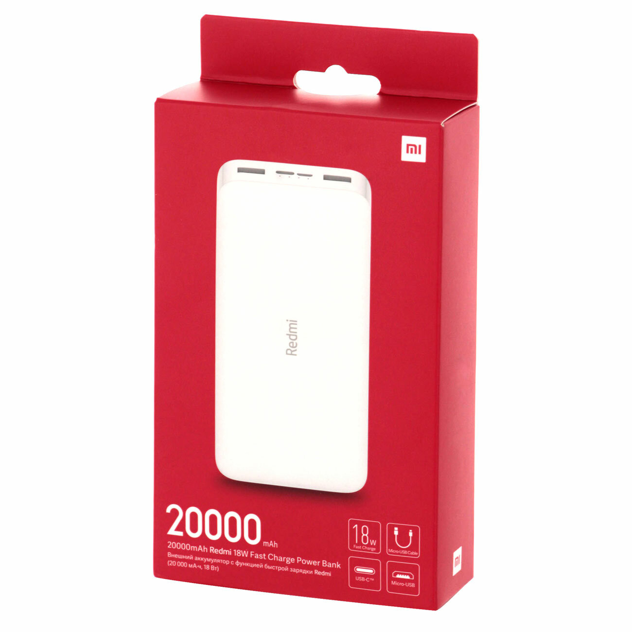 Портативный аккумулятор Xiaomi Redmi Power Bank Fast Charge, 20000 mAh, белый, упаковка: коробка