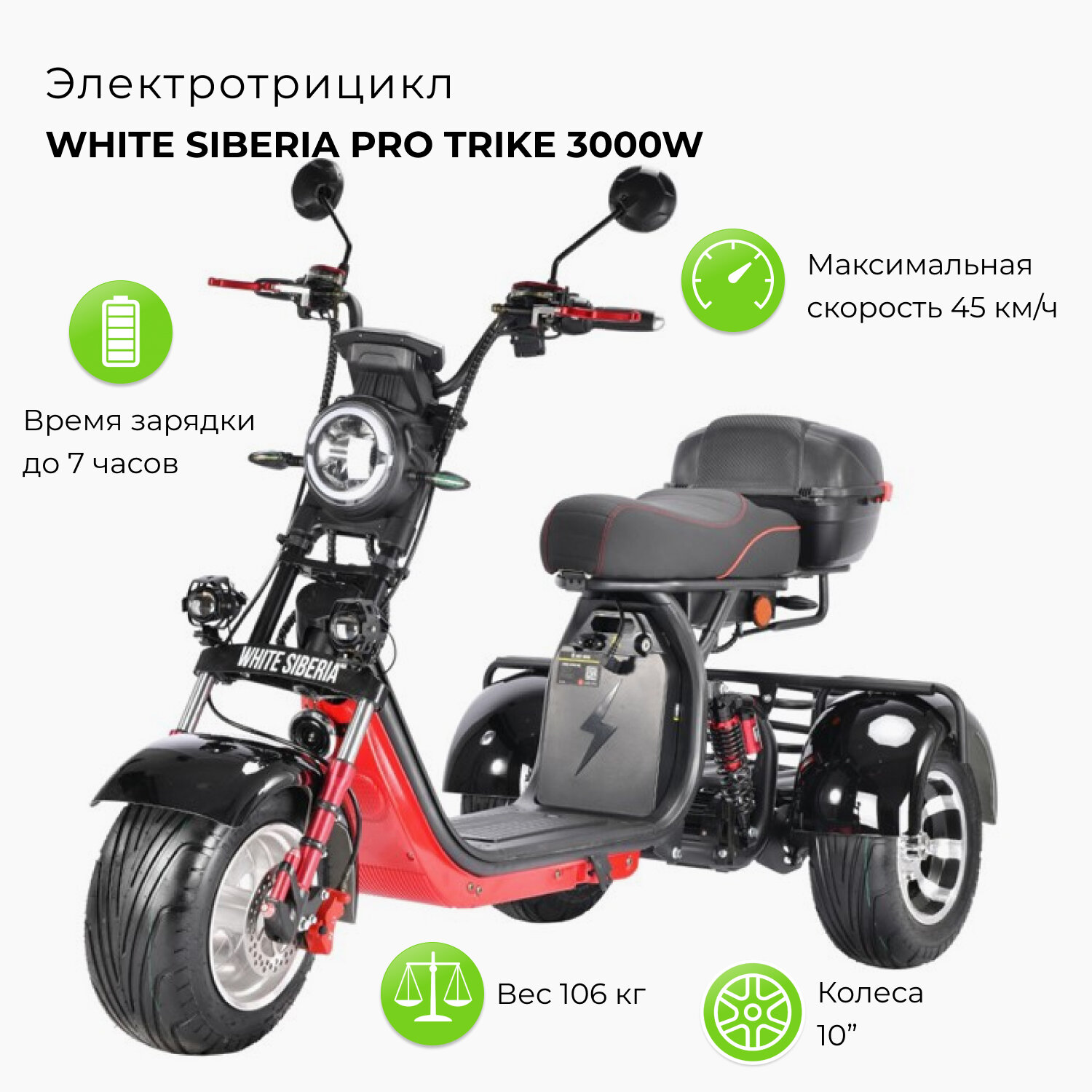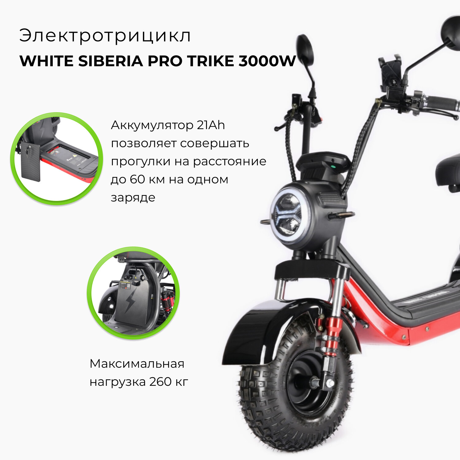 Электромопеды и электромотоциклы Трехколесный электроскутер White Siberia Pro Trike 3000W 60V/20Ah